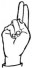 На ћирилици написано МАРИЈА СЕКИЦКИ састоји се из 13 слова [?]. Исписано ћириличном једноручном азбуком за глувонеме: